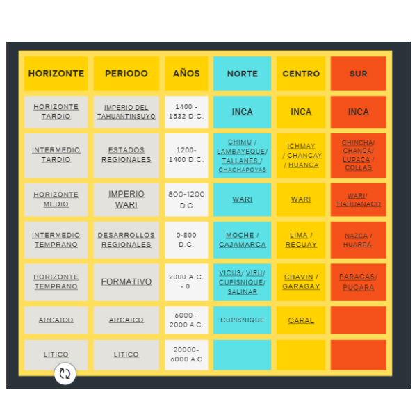 Cuadro Cronológico de las Culturas del Perú.